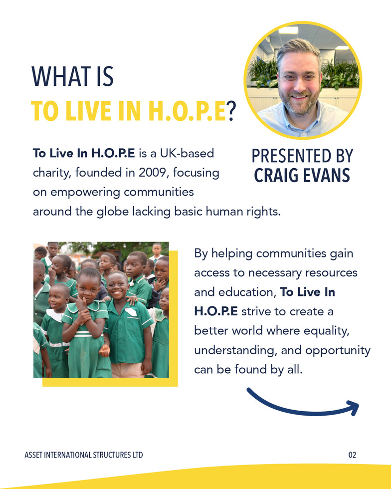 To Live In H.O.P.E is a UK-based charity founded in 2009. By helping communities gain access to necessary resources and education, the charity strives to create a better world where equality, understanding, and opportunity can be found by all.